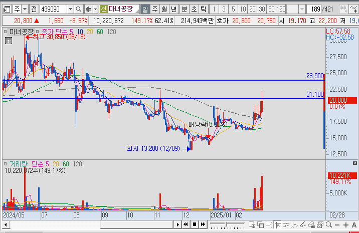 마녀공장은 2012년 자연 유래 발효 추출물에서 찾은 미백 케어 기능성 제품을 시작으로 좋은 성분과 확실한 효능에 대한 고객 신뢰를 쌓아가며 자연주의 기능성에서 더 나아가 클린뷰티, 비건 화장품 시장의 본격 포문을 열며 성장해왔으며 대표 브랜드인'ma:nyo'을 중심으로 '아워비건'과 같은 기초 화장품 브랜드와 향 특화 브랜드인 '바닐라부티크', 색조화장품 브랜드 '노머시' 등을 보유하고 있습니다. 주요 품목은 앰플&세럼, 클렌징, 스킨케어, 기타 등으로 분류되고 있으며, 안정적인 포트폴리오를 통한 고객 만족 실현 및 동종업계 경쟁사 대비 높은 성장을 지속하고 있습니다. 더불어 OEM/ODM사와 설립 초기부터 파트너십을 가지고 제품을 생산하는 방식으로 다양한 성분과 기능의 제품들을 신속, 유연하게 출시할 수 있는 장점을 활용하여 빠르게 변화하는 소비자 니즈에 신속하게 대응하며 다양한 마케팅을 진행하여 더 많은 고객들에게 마녀공장 브랜드를 각인시키고 있습니다.